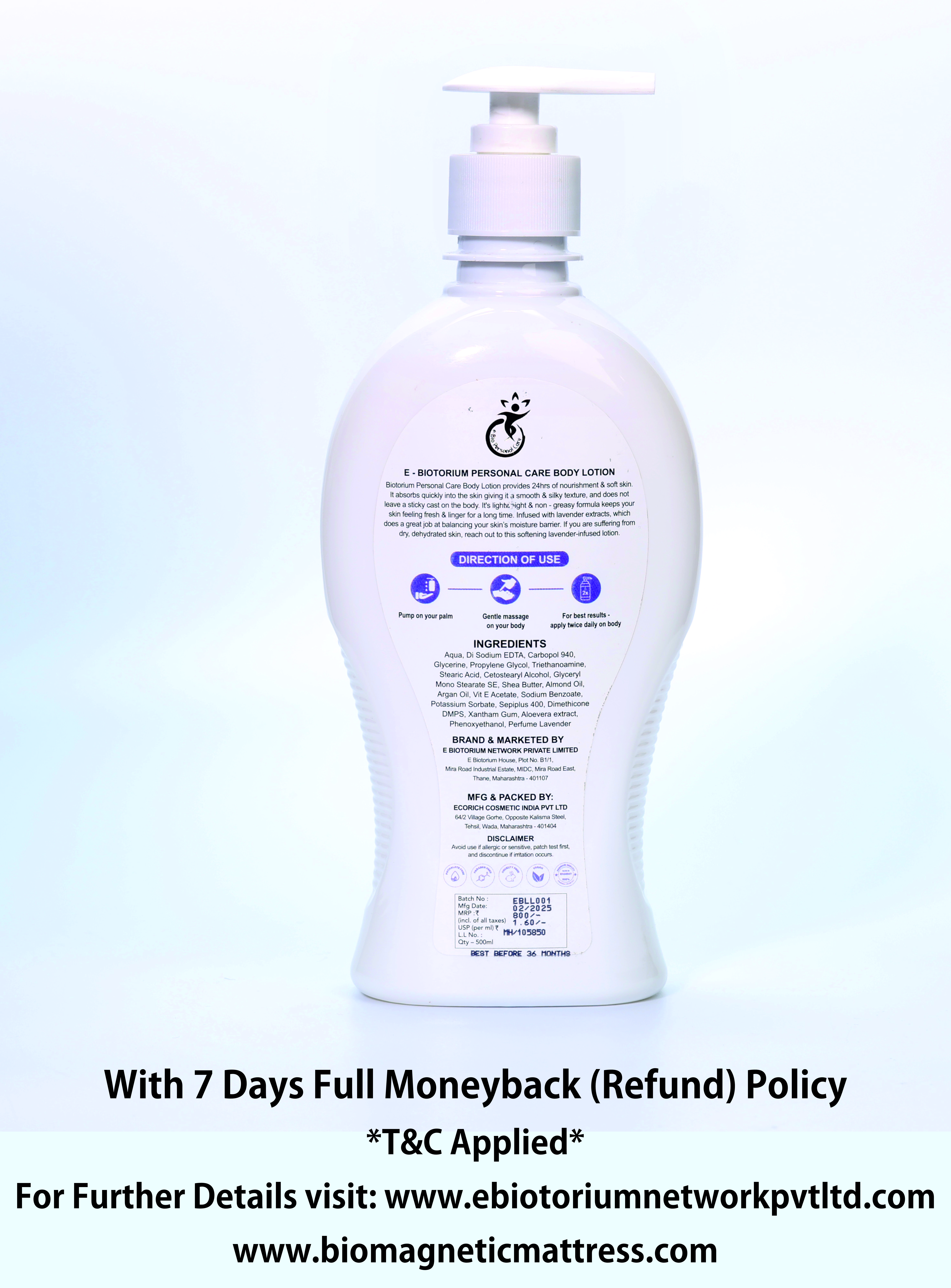People with sensitivities or allergies to any listed ingredient should not use the product. In case you are in doubt or have sensitive skin, always try an allergy patch test and if at any time irritation occurs, discontinue use of the product. E Biotorium Network Private Limited does not provide any warranty or guarantee on any of its products.