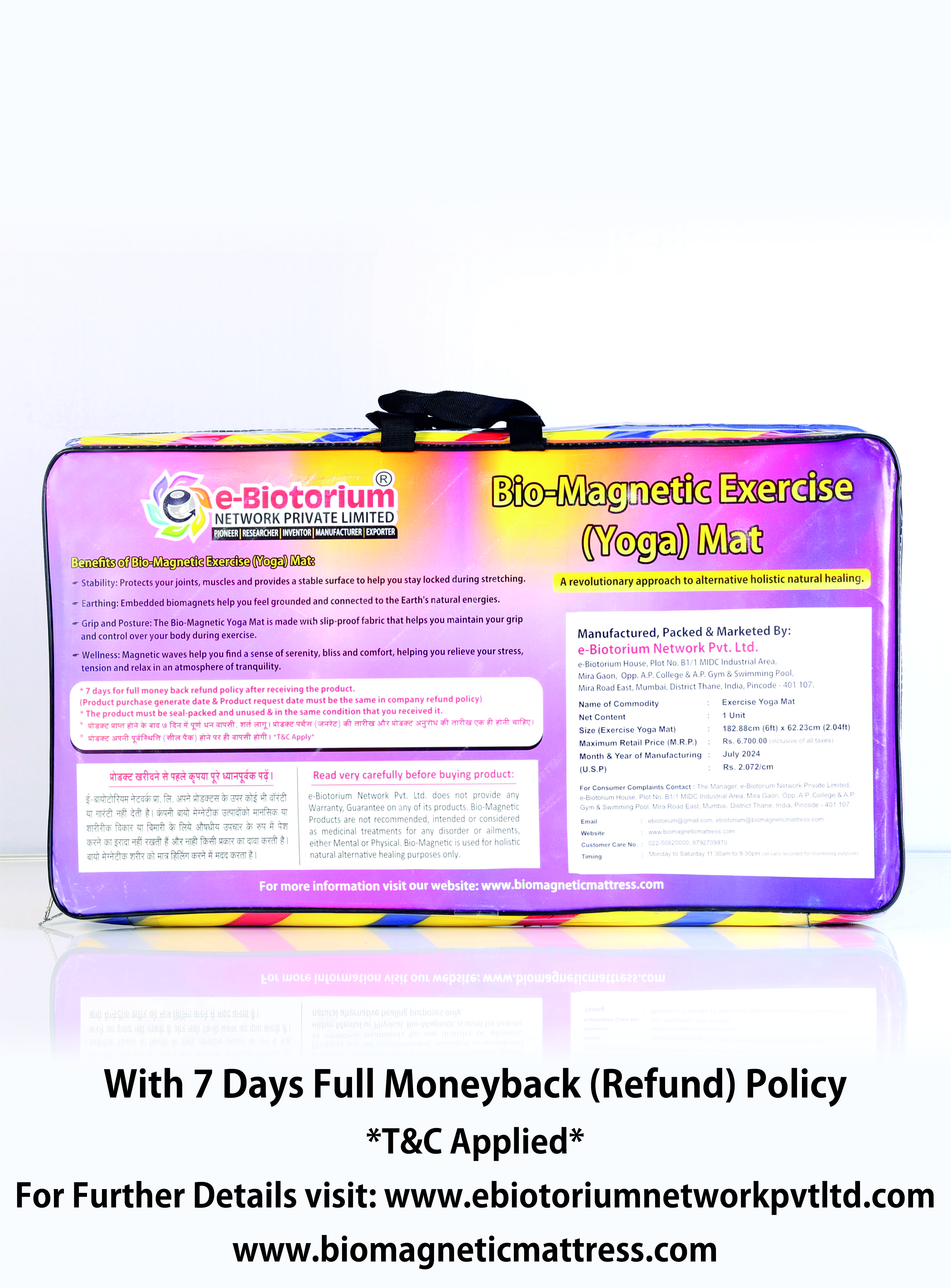 The Exercise (Yoga) Mat is designed for comfortable yoga, meditation, and general exercise sessions. With a soft layered structure and embedded magnets, it provides durability, portability, and ease of use for daily practice.
